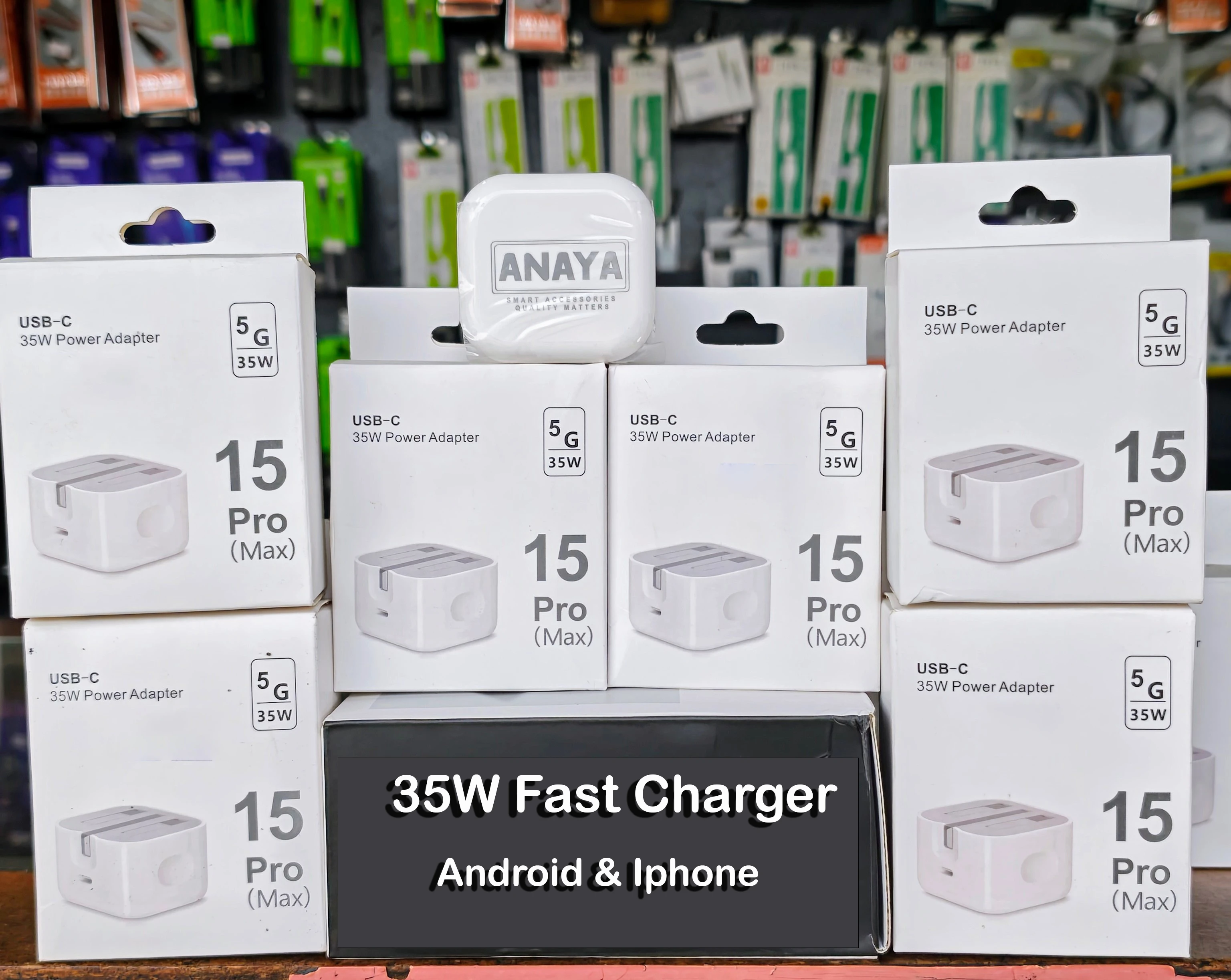 Anaya 35W USB-C Fast Charging Power Adapter compatible with smartphones, tablets & more — compact, powerful, and travel-friendly. Folding Pin For Android & Iphone