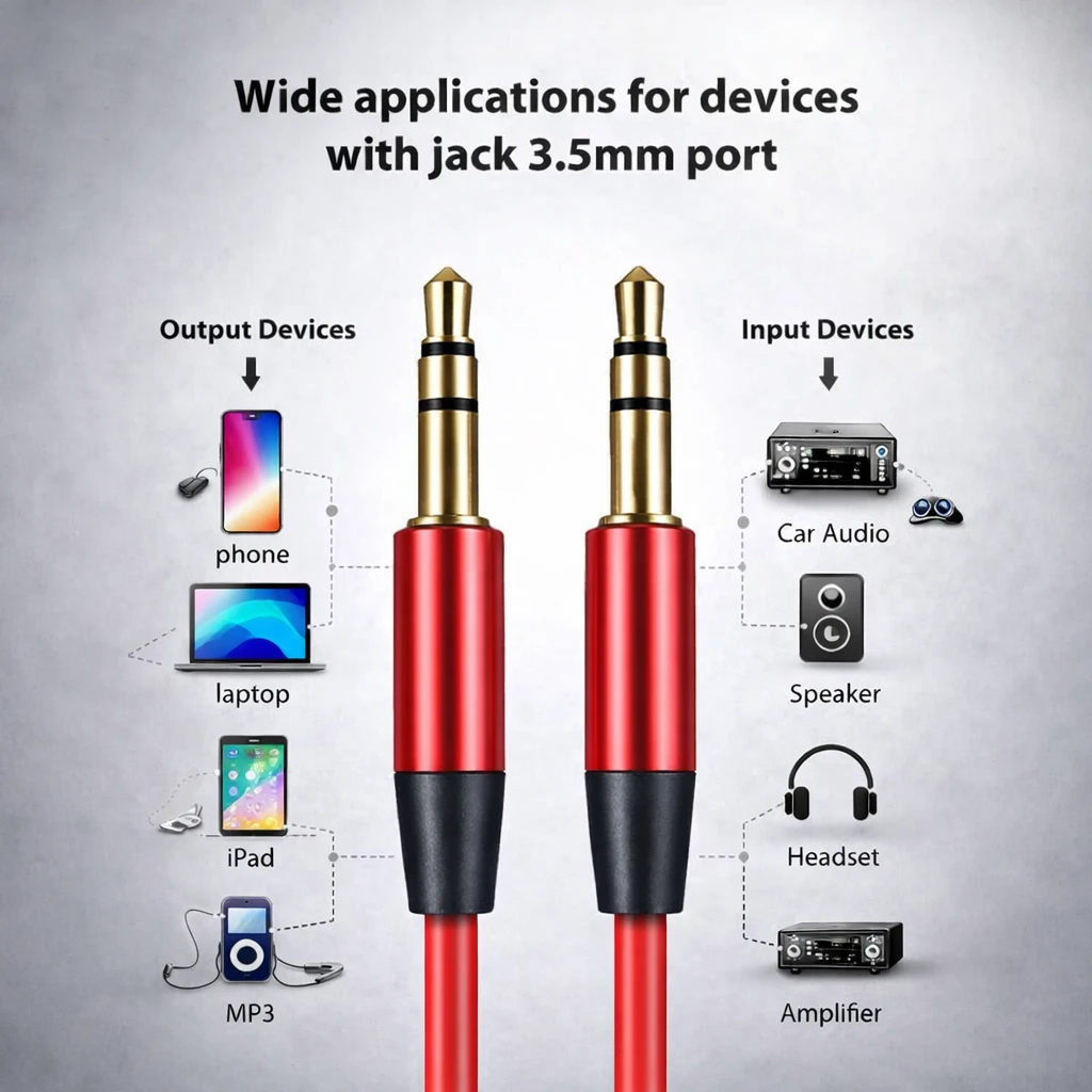 The Backwin L-130 3.5mm AUX Audio Cable delivers clear, high-quality stereo sound for all your audio needs. Designed for seamless connectivity, this cable allows you to easily connect smartphones, tablets, laptops, car stereos, speakers, headphones, and other devices with a 3.5mm audio jack.