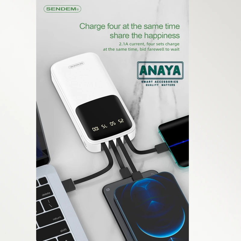 Stay powered up wherever you go with the Sendem PH02-LED 20000mAh Power Bank — the smart, all-in-one charging companion.