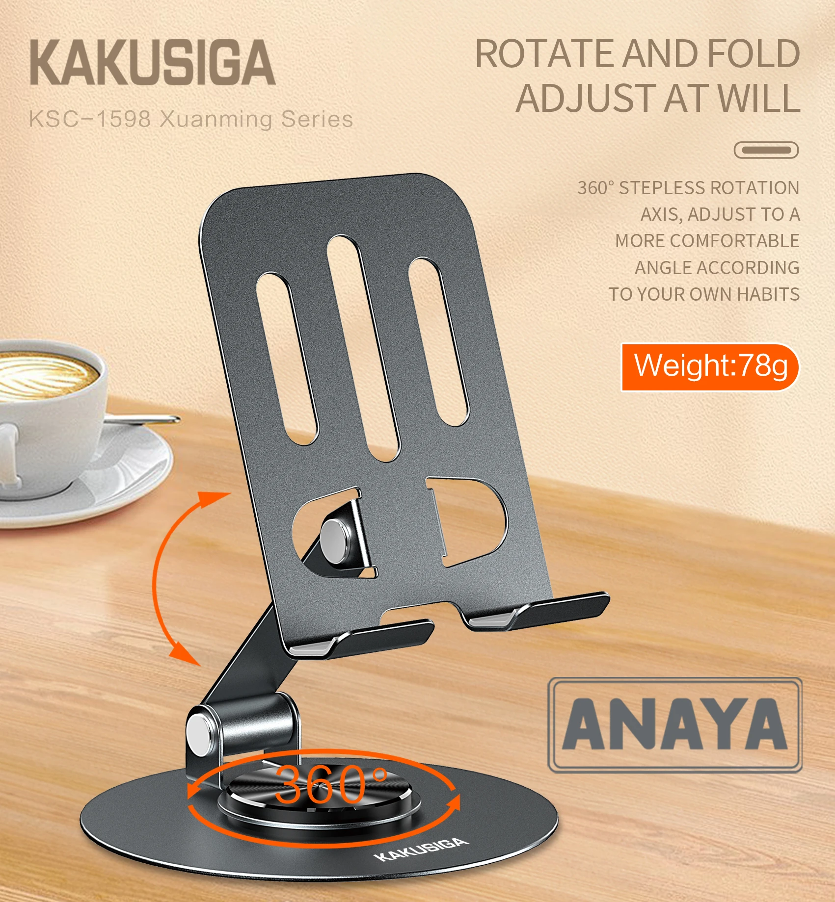 This KAKUSIGA KSC-1598 metal phone stand is designed for desk use, offering a flexible and adjustable solution for holding 4.7 to 7-inch mobile phones securely. Its robust design ensures durability while the lay-flat fix mode provides stability. Weighing only 78g, it combines portability with functionality, making it ideal for offices or living spaces. Customized logos are supported,