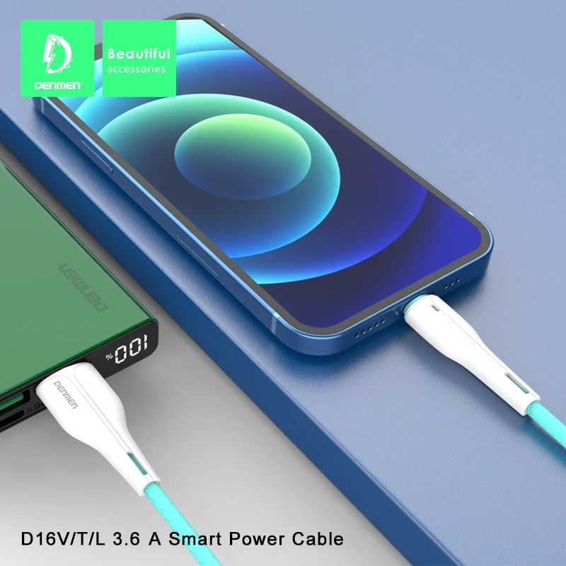 Denmen 3.6A Fast Charging USB Data Cable with LED indicator for quick, safe charging and smooth data transmission.