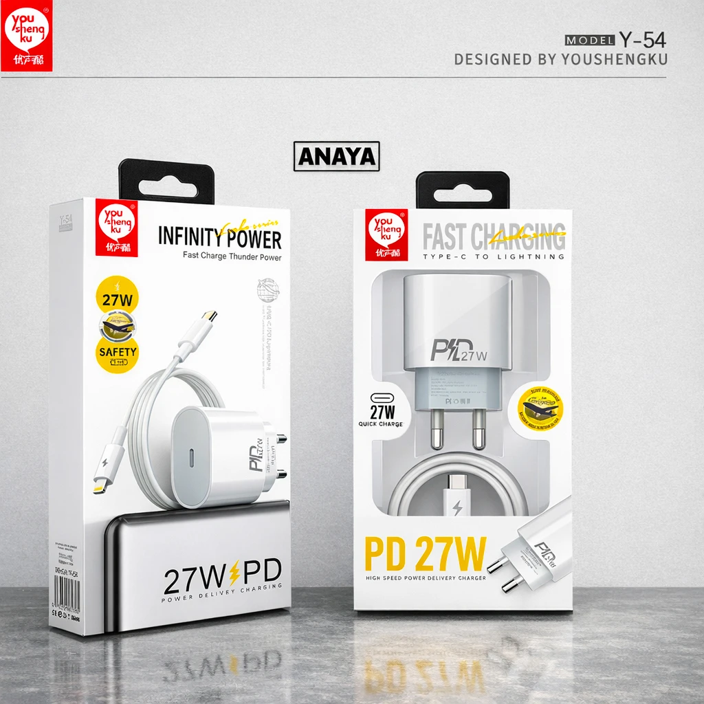 The You ShengKu-Y54 PD-27W Infinity Power charging set combines fast charging versatility with modern design and compatibility. It includes both USB-C to USB-C and USB-C to Lightning charging options — ideal for powering Android devices, Apple iPhones and other gadgets from a single USB-C power source.