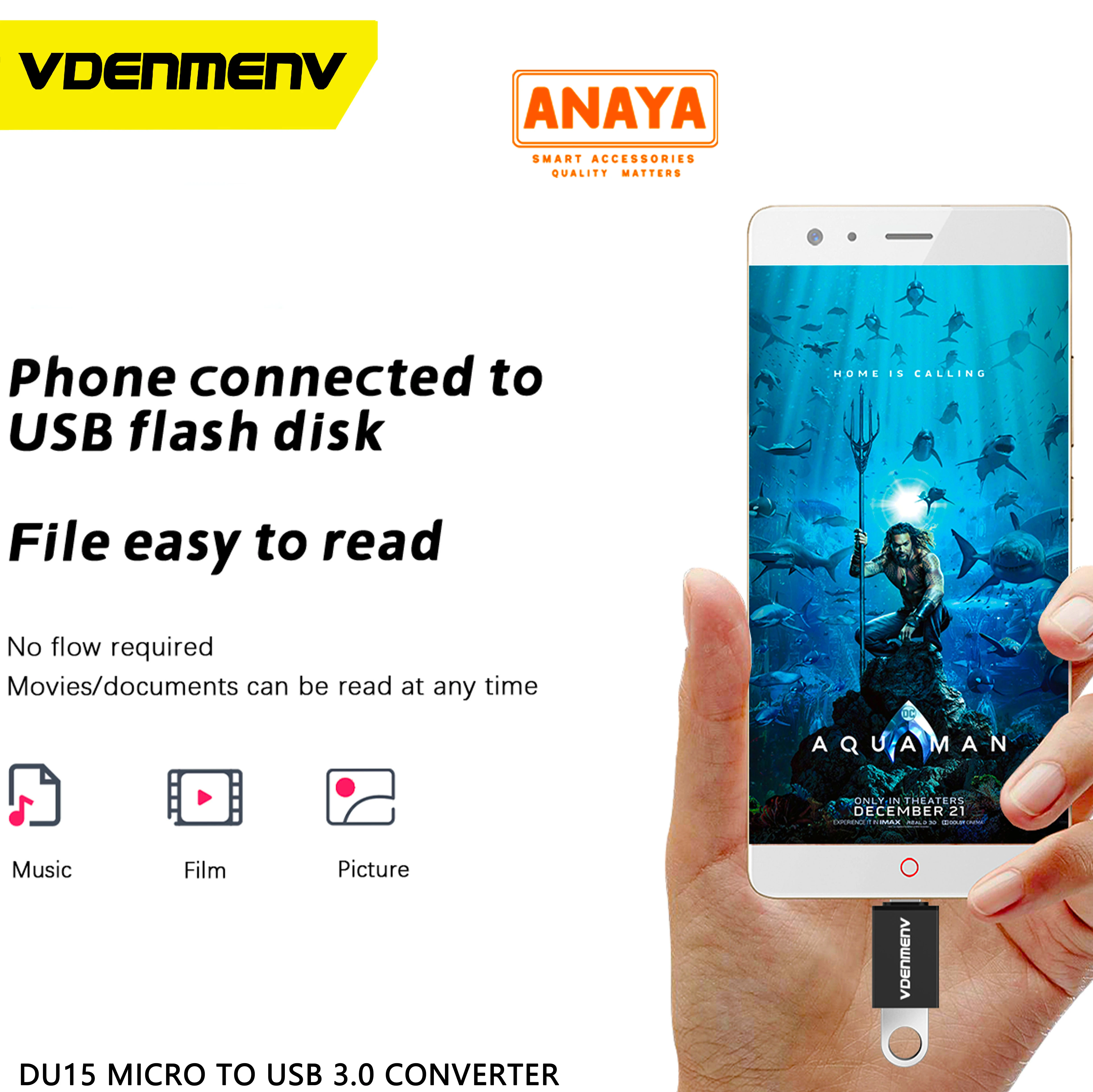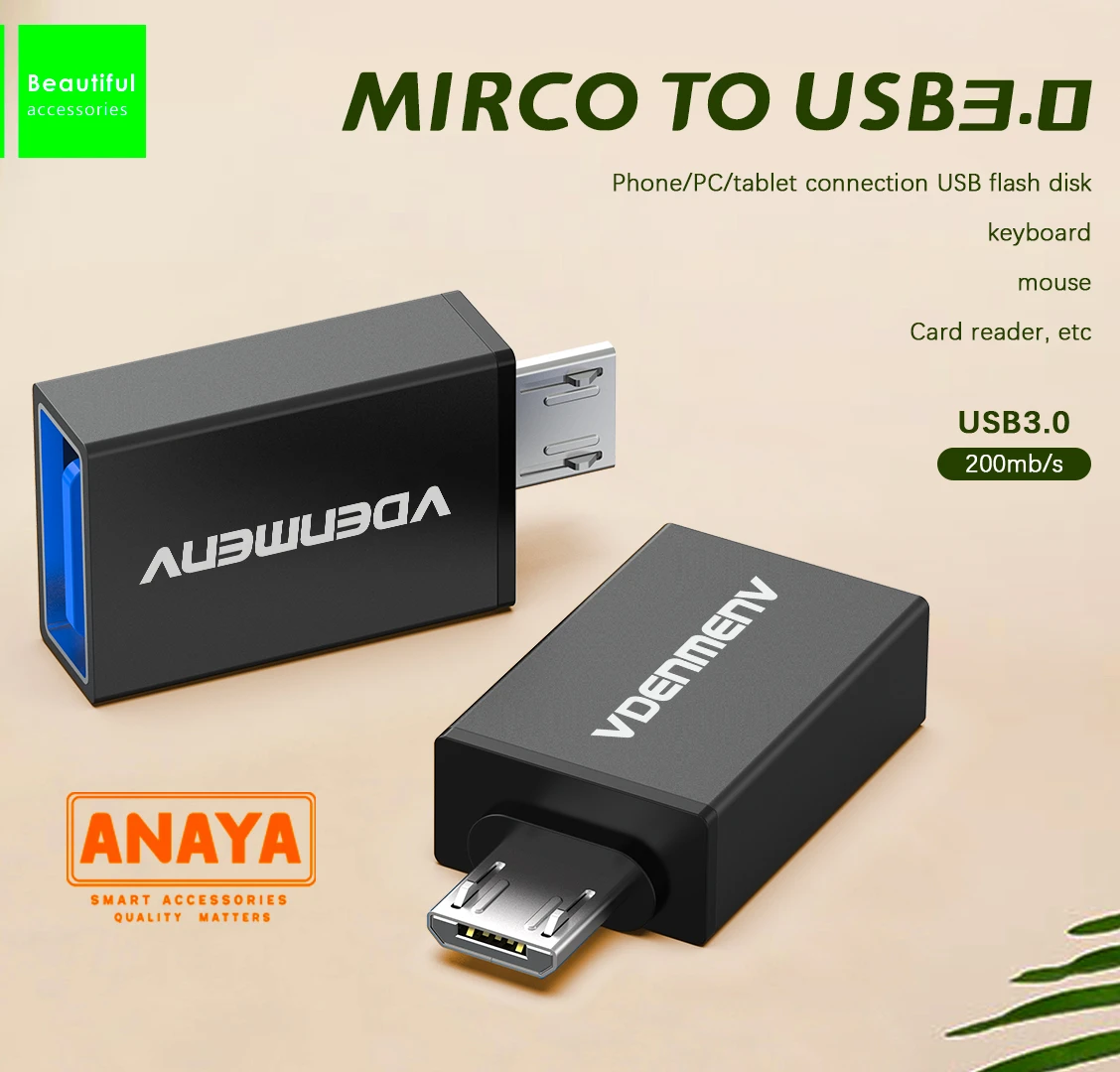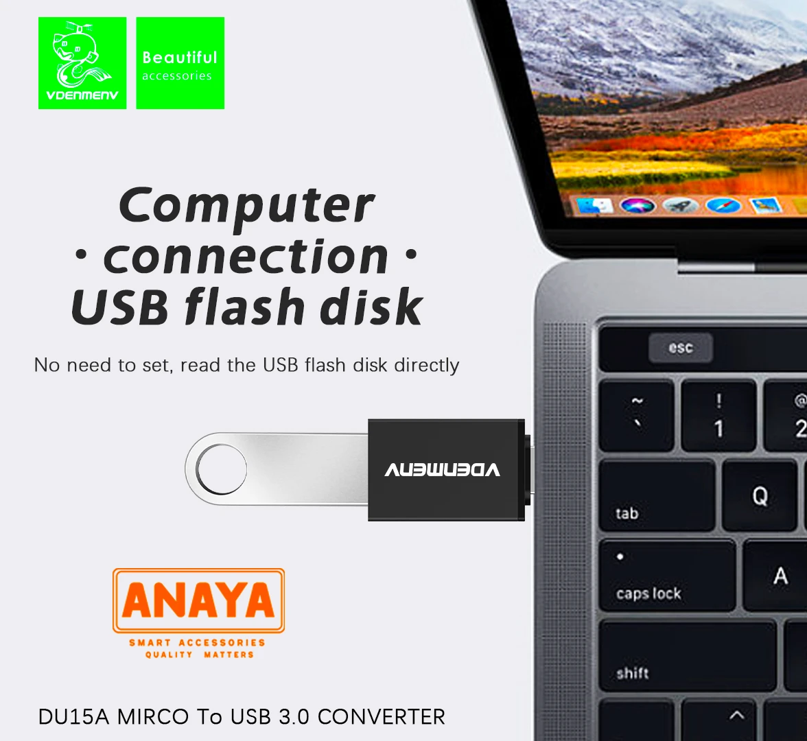 The Denmen DU15 Micro USB to USB 3.0 Converter lets you easily connect USB flash drives and other USB devices to your Micro USB phone or tablet. With OTG support, it provides fast, stable data transfer and convenient access to external storage. Its compact design makes it portable and perfect for on-the-go file sharing, backups, or using USB accessories with your Micro USB device. Durable and reliable, the DU15 is an essential accessory for expanding your device’s connectivity.