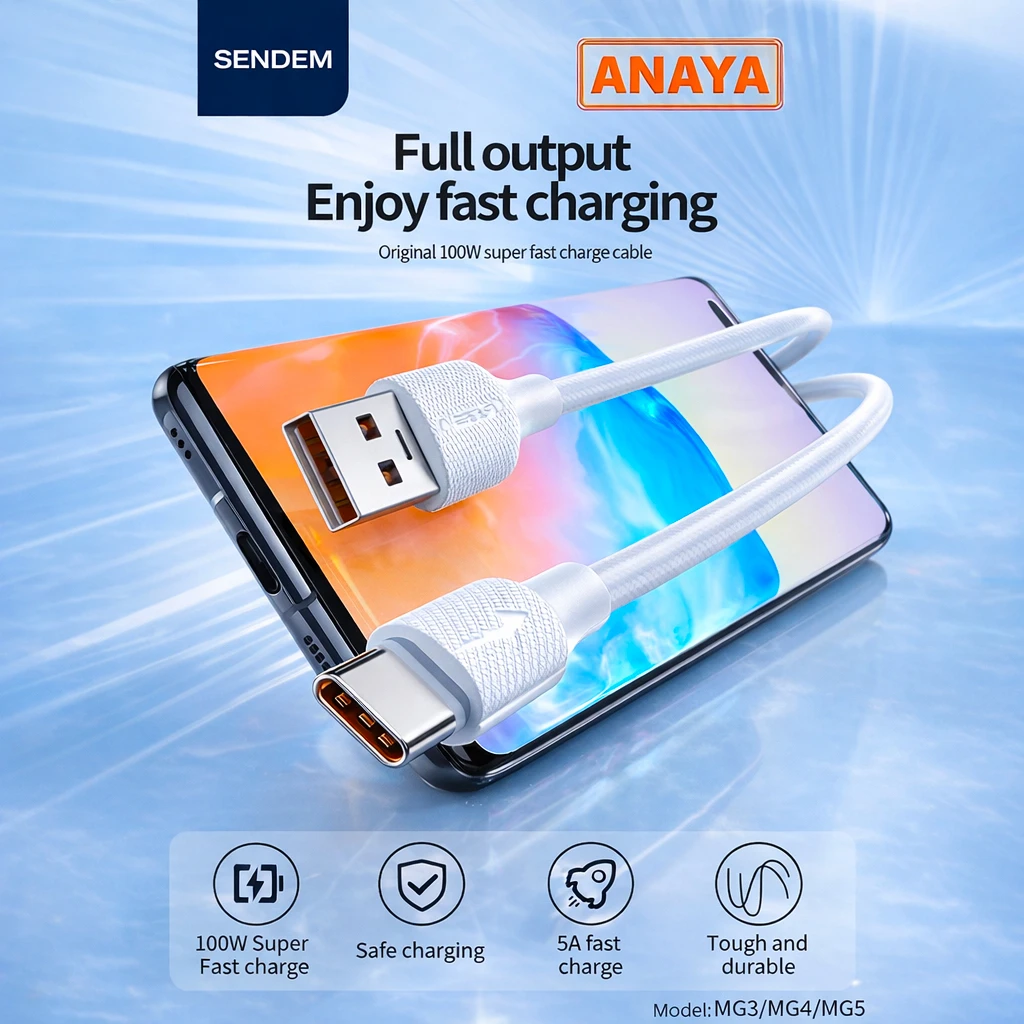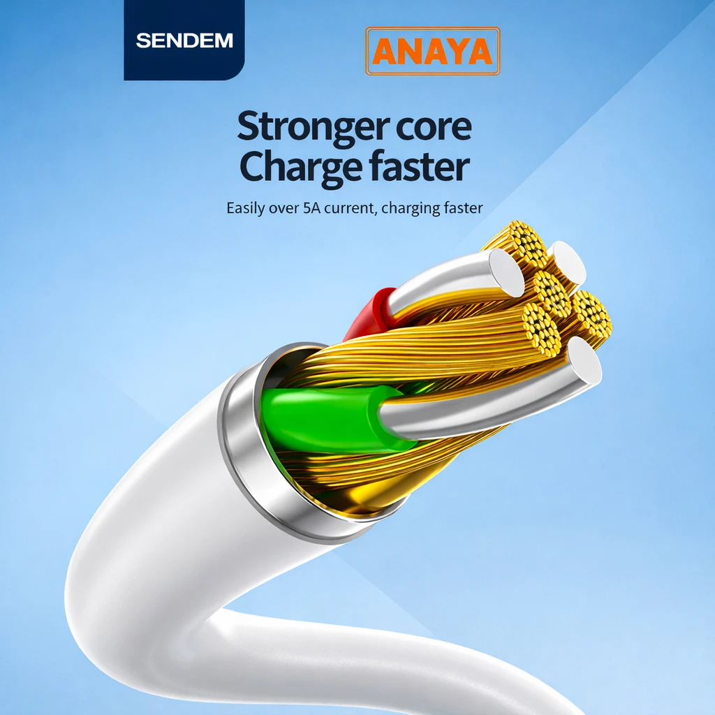 The Sendem M65 5A 100W USB Data Cable is built for super fast charging and stable data transfer, making it perfect for modern digital devices. With powerful 5A output and up to 100W Power Delivery support (Type-C version), it ensures efficient and reliable charging performance.