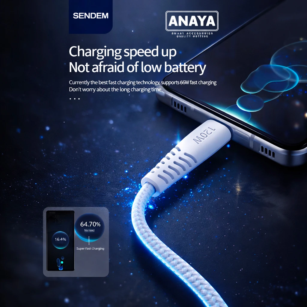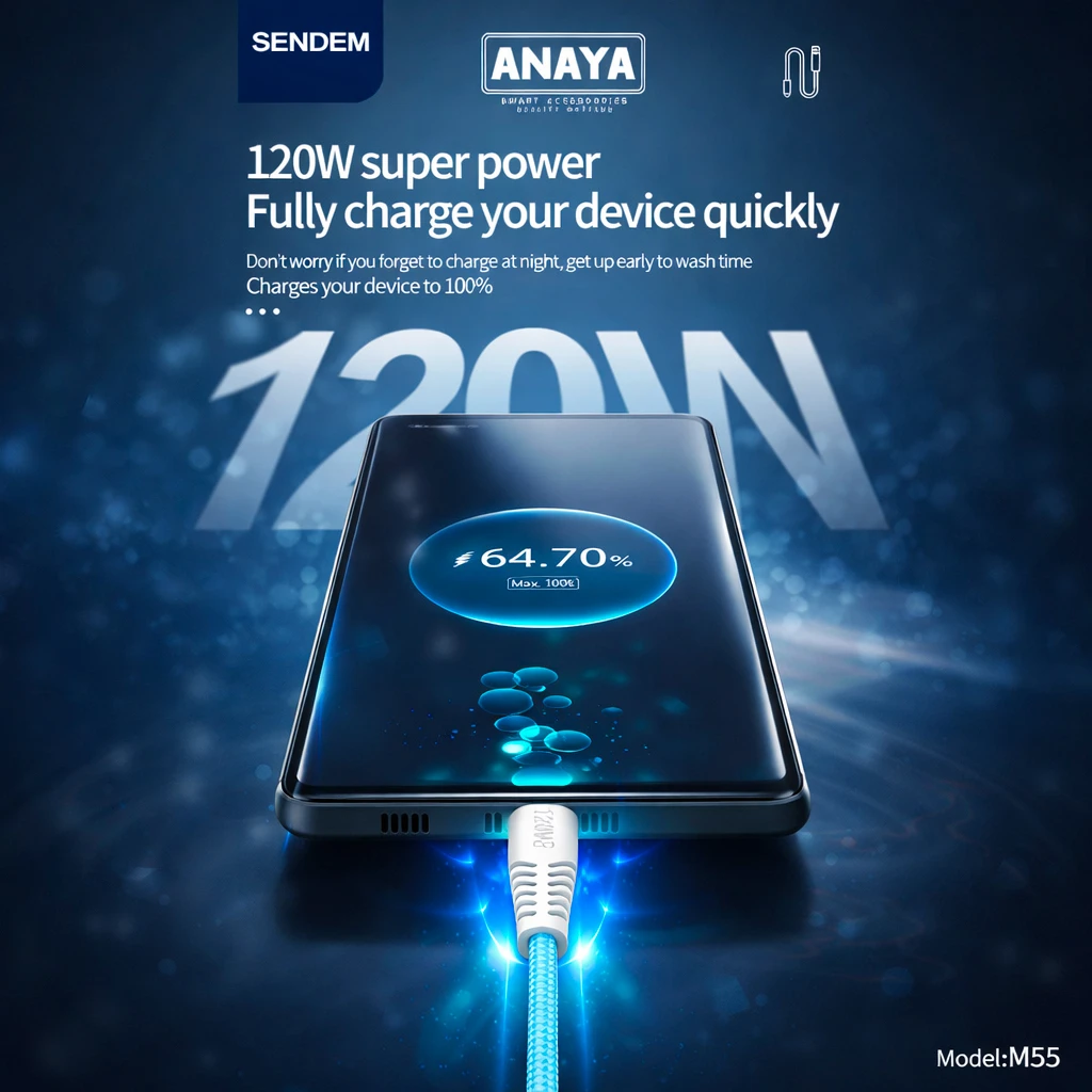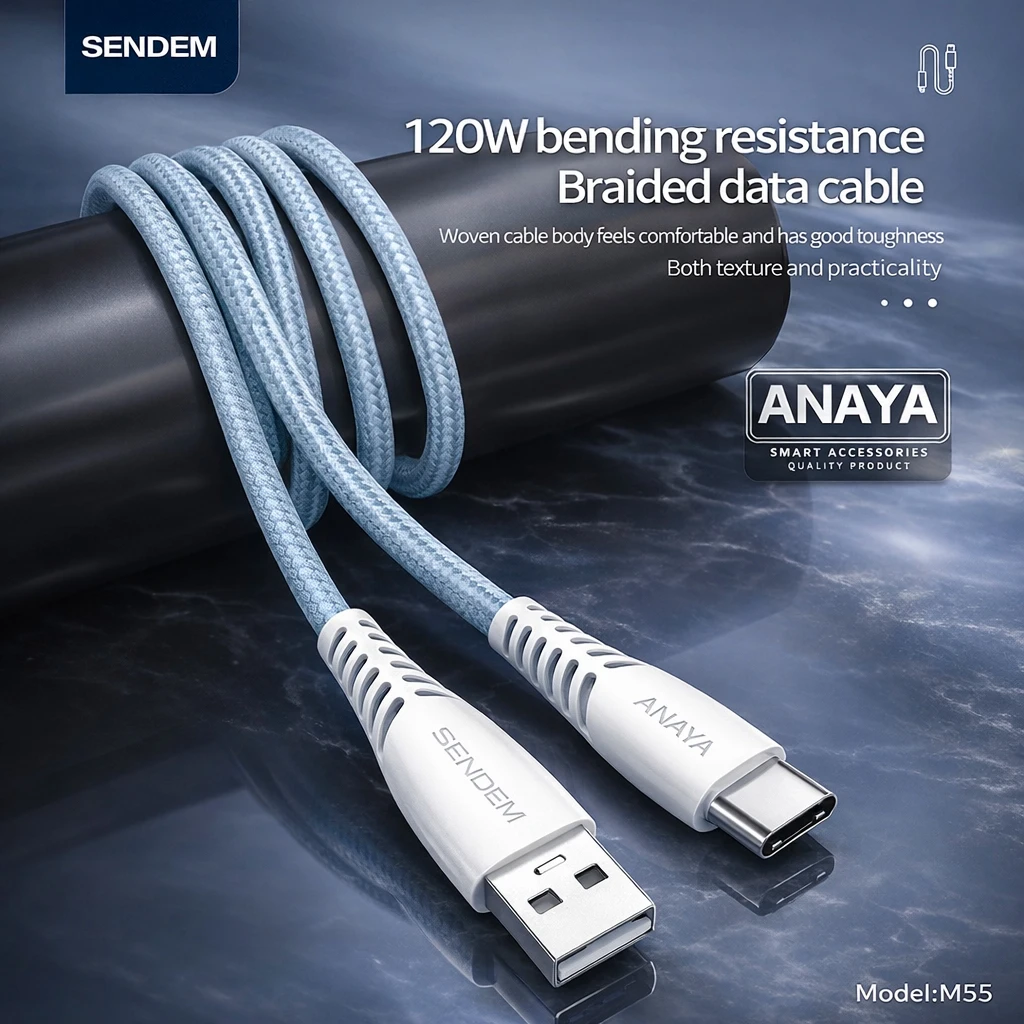 The Sendem M55 120W USB Cable combines speed, strength, and reliability—making it the perfect choice for everyday charging and data needs.