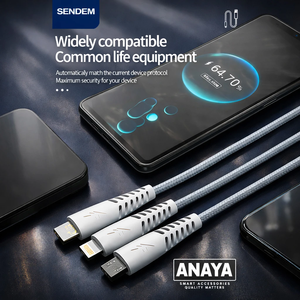 Available in Micro USB, Type-C, and iPhone (Lightning) connectors, the Sendem M55 offers wide compatibility with smartphones, tablets, power banks, and other USB-powered devices. In addition to fast charging, it also supports reliable and stable data transfer for syncing files, photos, and more.